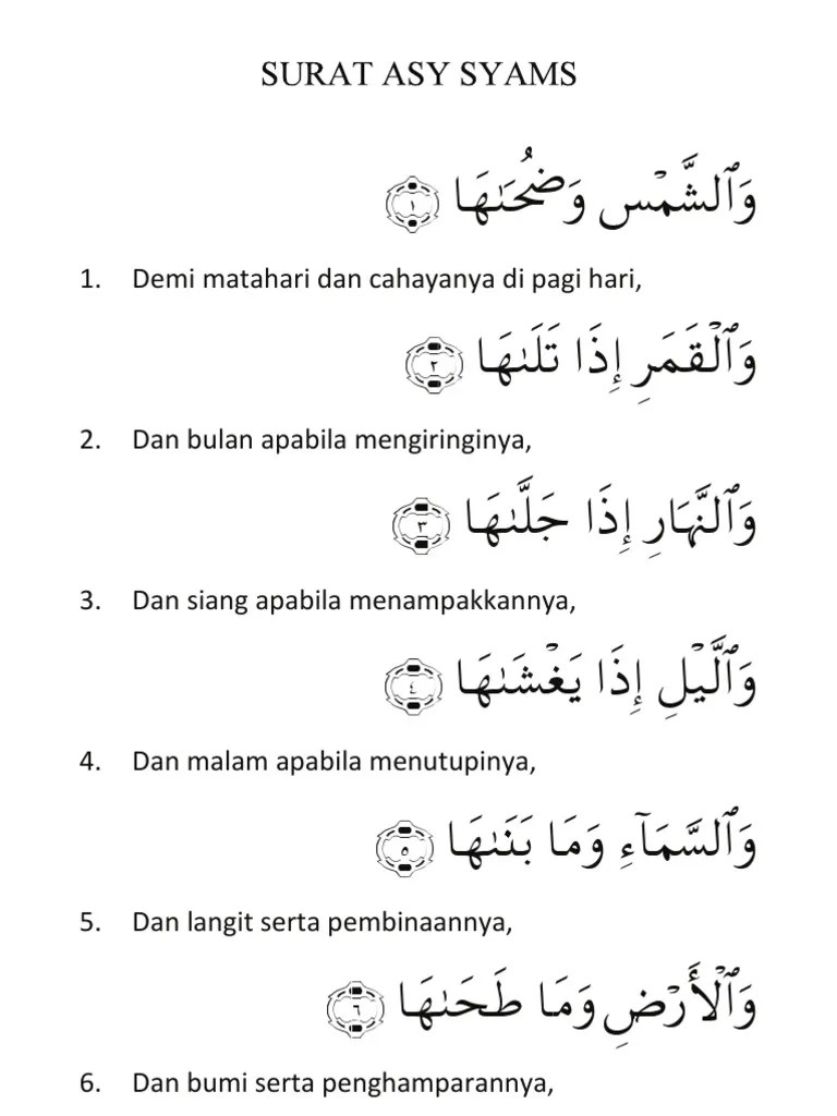 Itulah surat asy syams dan ad dhuha yang dapat admin kumpulkan. Keutamaan surat asy syams ad dhuha 1. Qad aflaha man zakkaahaa 10.waqad khaaba man dassaahaa Carilah hukum mad dan waqaf pada surat asy syams ayat 1 15 yang. Agaknya pendapat itu berpijak pada riwayat berikut ini.